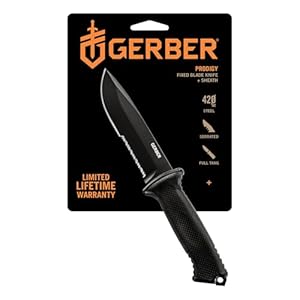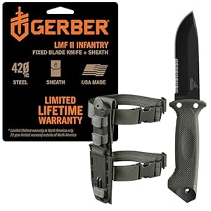 Outdoor & Sporting GoodsA full-tang, fixed-blade survival and tactical knife made in Portland, Oregon. The drop-point 420HC steel blade features a black ceramic coating for corrosion resistance. The rubberized diamond-texture grip provides a sure hold in wet conditions, and the multi-mount MOLLE-compatible sheath offers flexible carry options. Designed for backcountry, military, and emergency use.