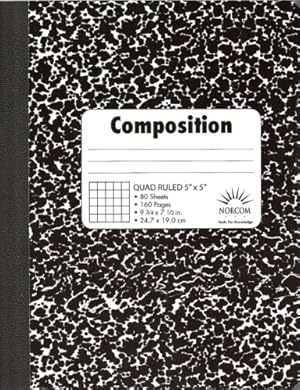 A graph-ruled composition book for math, science, engineering, and technical note-taking. Made at Norcom's Griffin, Georgia factory, this 9.75 x 7.5 inch sewn hardboard notebook contains 80 sheets (160 pages) of precise 5-squares-per-inch quad-ruled paper.